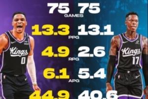 国王新赛季双控!威少上赛季场均13.3分6.1助 施罗德13.1分5.4助